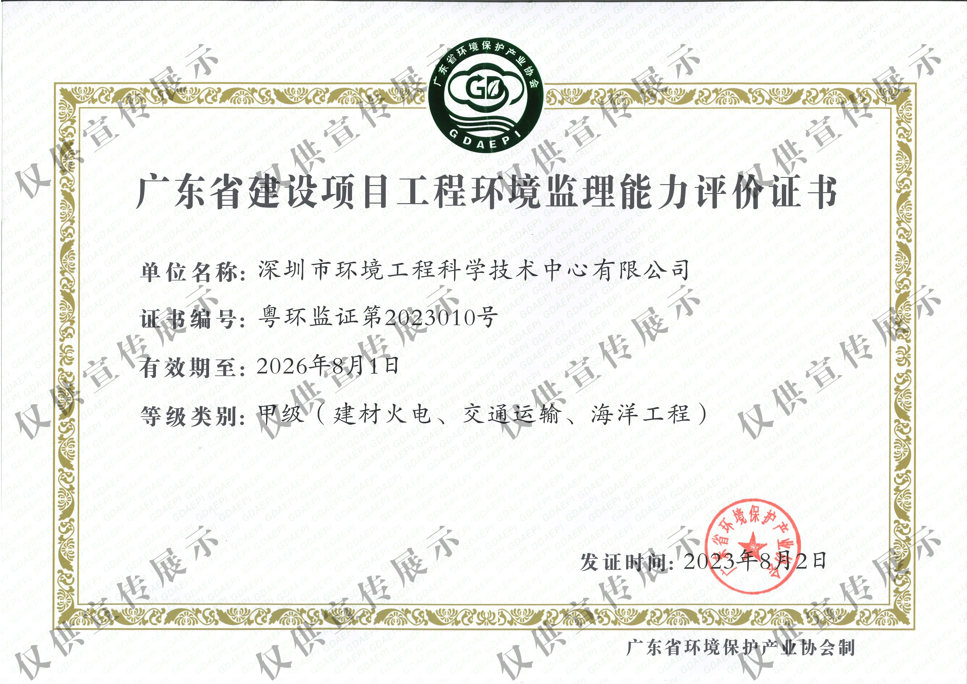 廣東省建設(shè)項(xiàng)目工程環(huán)境監(jiān)理能力評(píng)價(jià)證書